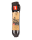 The 7mm dual cord 10ft leash has two stainless steel pivot points to avoid tangling and an interchangeable heavy duty neoprene cuff which can be attached to your ankle or calf. The cuff has a loop for quick release as well as an integrated storage pouch. At the other end there is a rail saver and a piece of string which you can use to attach the leash to any board, alternatively you can remove this and attach the leash directly to the D-ring on the back of the board.