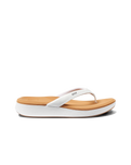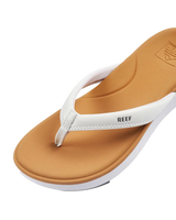 Step into ultimate comfort with the Reefs Womens Cushion Cloud Flip Flops in White & Tan.