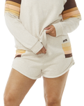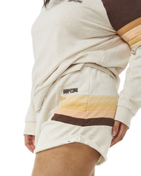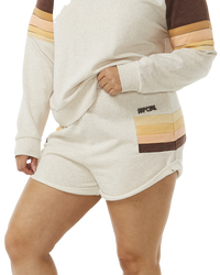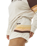 A stylish and comfortable addition to your casual wardrobe Rip Curl’s Block Party Track Shorts in Oatmeal are crafted from a blend of cotton and polyester fleece, they offer softness and durability. With a garment burnout wash, they have a unique, lived-in look. The standard fit and cut and sew panel design provide a classic and relaxed feel, suitable for various activities. The embroidered logo adds a subtle touch of branding to these versatile shorts, making them a perfect choice for those who appreciate both fashion and functionality, whether you're lounging at home or hitting the streets.