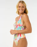 Make a splash with the Rip Curl Cala Vadella Cheeky One Piece Swimsuit in Multicolour.