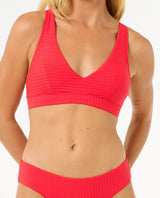 Elevate your swimwear collection with the Rip Curl Premium Surf D-DD Deep V Bikini Top in Hibiscus Red.