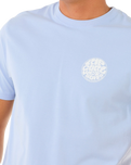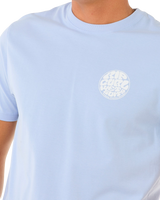 Embrace effortless cool with the Rip Curl Mens Wettie Icon T-Shirt in Ice Blue.