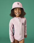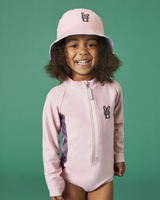 Get ready for splash-tastic fun with the Girls Hop The Bunny Swimsuit in Pink from Roarsome.