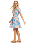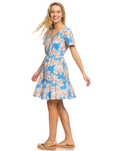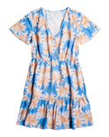 There’s only one way to dress this summer and that’s in the super cute Roxy Bikini Party Dress in Azure Blue Palm Island. This short length short sleeve dress is made with soft cotton and viscose fabrics, perfect for keeping you cool during the warmer months. Adorned with a stunning palm design the dress features a front opening with recovered buttons and a large ruffle at the bottom which adds a stylish finishing touch.