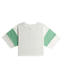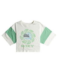 Elevate your girl's style with the Roxy Girls Let's Get It Started T-Shirt, a trendy addition to her wardrobe.