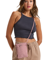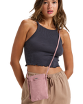 The Roxy Women’s Peaceful Bay Phone Bag in Pink Carnation is the perfect blend of style and convenience for the modern trendsetter on the go.
