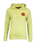 The Classic Dot Chest Hoodie in Aloe Green showcases the iconic Santa Cruz logo prominently on the chest, with a larger, eye-catching version displayed on the back.