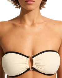 Beach Bound Ring Front Bandeau Bikini Top in Ecru