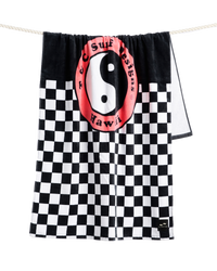 The classic black and white check design exudes sophistication and versatility, making it a perfect match for any setting. Crafted from premium, ultra-absorbent cotton, it ensures rapid drying and a soft, luxurious feel against your skin.