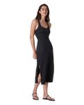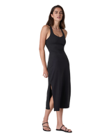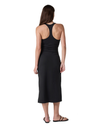 Introducing the Vuori Womens Halo Racerback Dress in Solid Black, where comfort meets style in one sleek design.