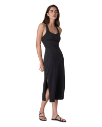 Made with Vuori DreamKnit™ performance 4-way stretch knit fabric, this dress offers a luxuriously soft feel and incredible flexibility, perfect for any activity or casual day out. The curved V neckline and racerback design add a touch of athletic elegance, while the light support internal bra ensures you feel secure and comfortable. Featuring side slits on both sides, this dress enhances mobility and adds a chic, modern look.