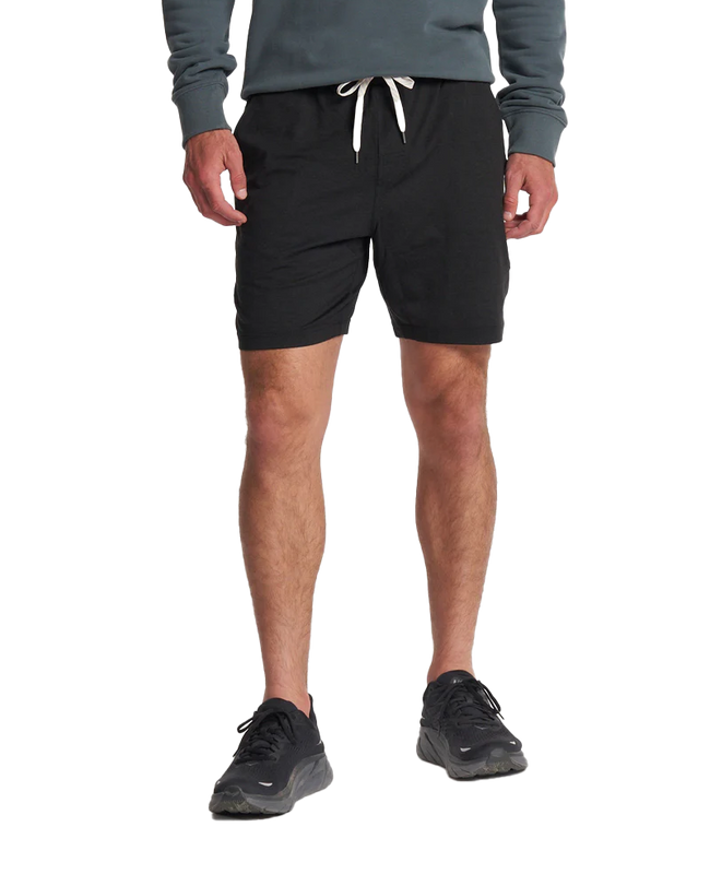 Experience the perfect fusion of comfort and sustainability with the Ponto Performance Shorts in Black Heather from Vuori.